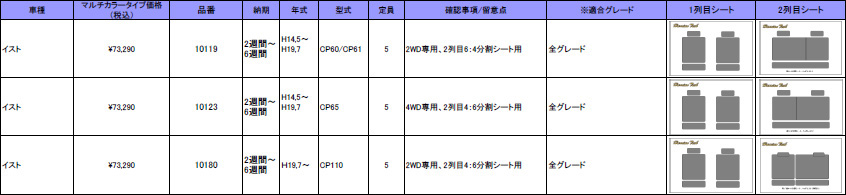 | ハリアンテック イスト レザーシートカバー マルチカラータイプ | |||||||||||||||||
